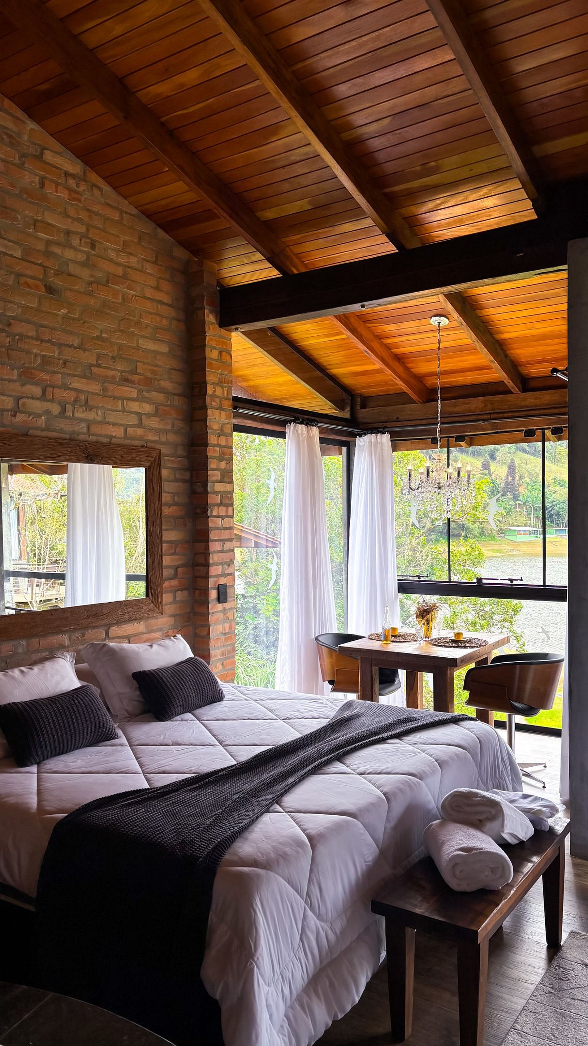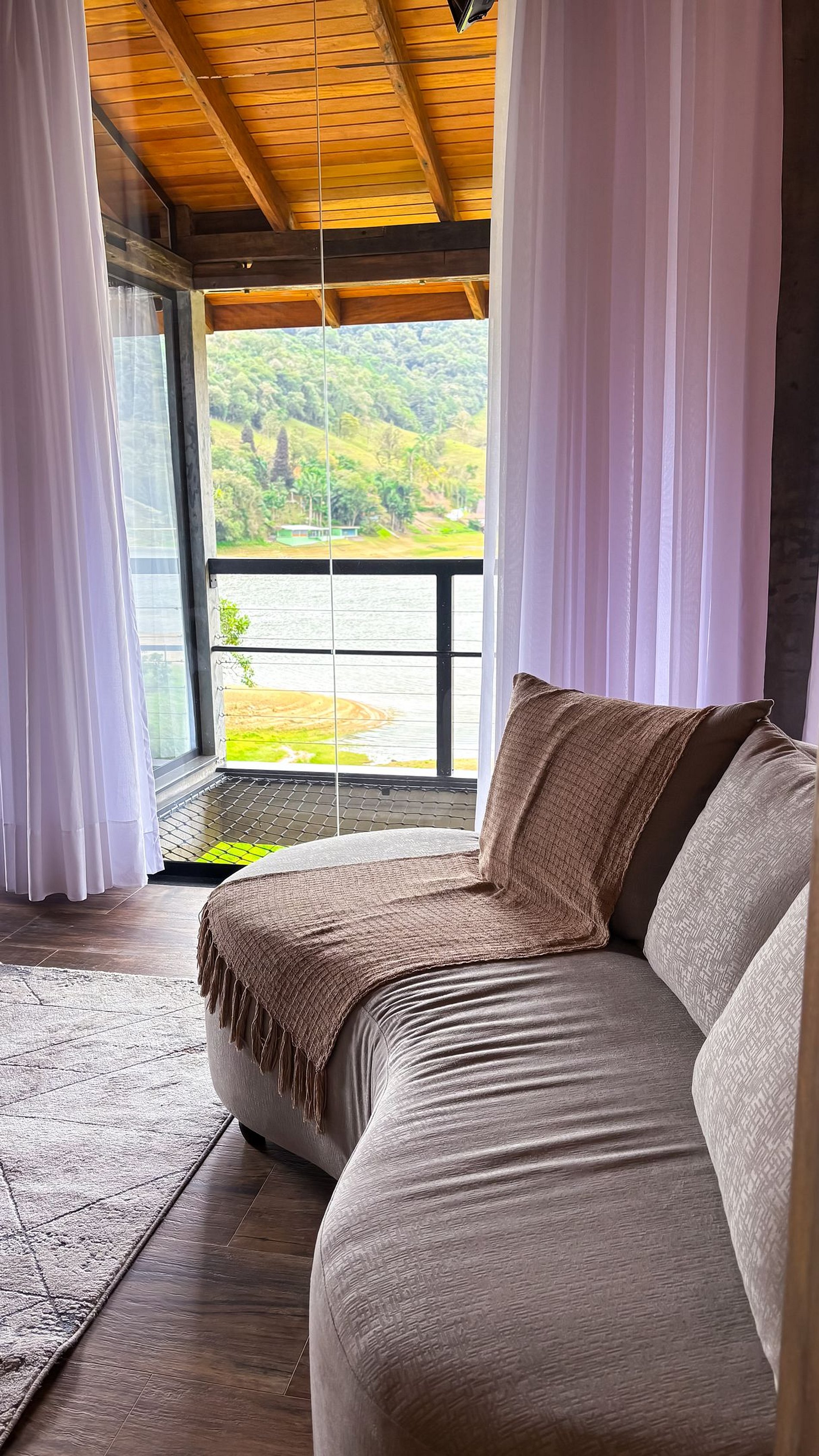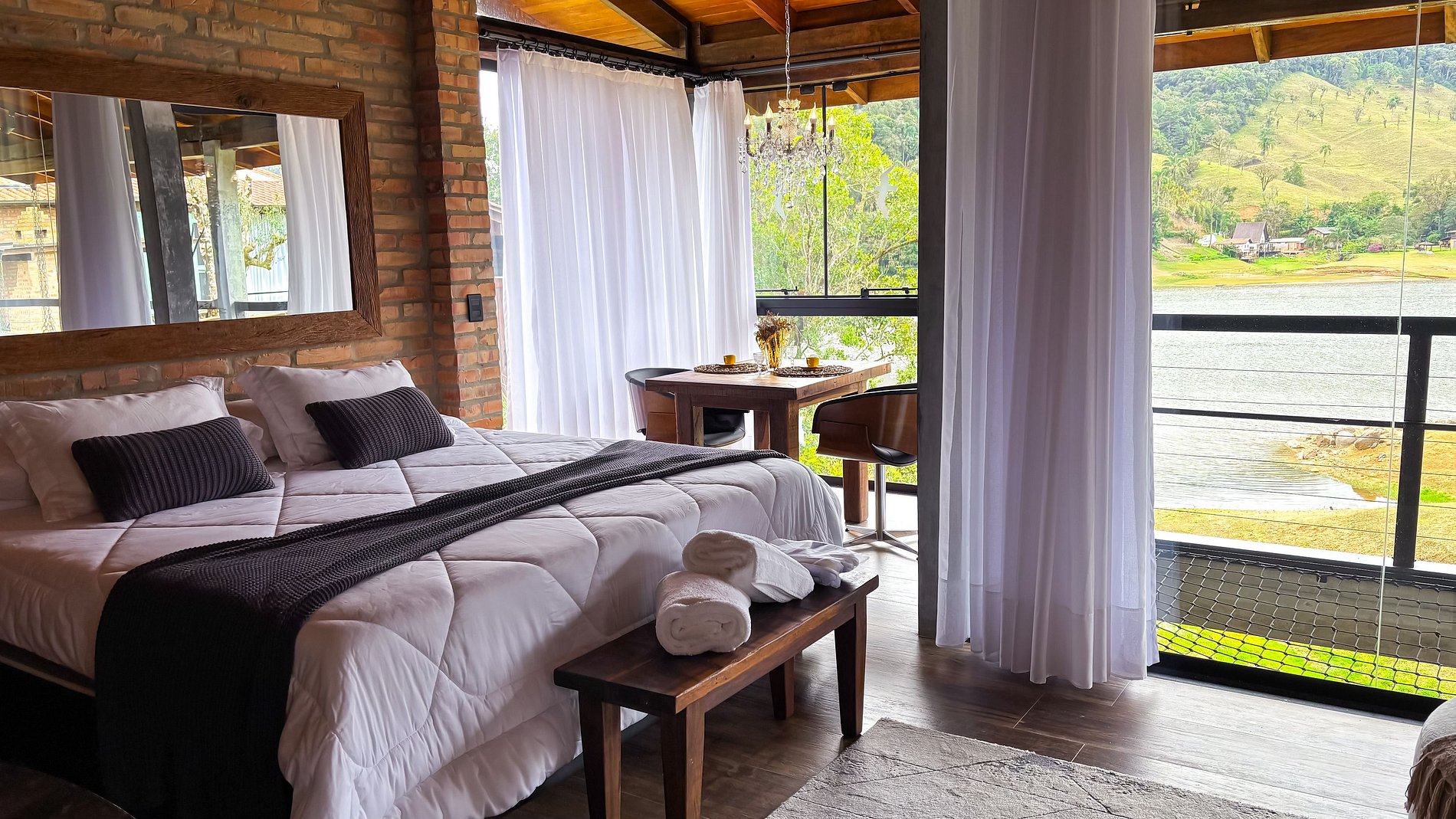 Projetada para trazer o máximo de conforto aos hóspedes, a Cabana de Pedra oferece a combinação perfeita de comodidade e sofisticação com uma vista privilegiada para a Barragem. Seus diferenciais de design, como o chuveiro exclusivo com chão de pedra, e a rede suspensa na varanda, garantem uma experiência única e inesquecível.