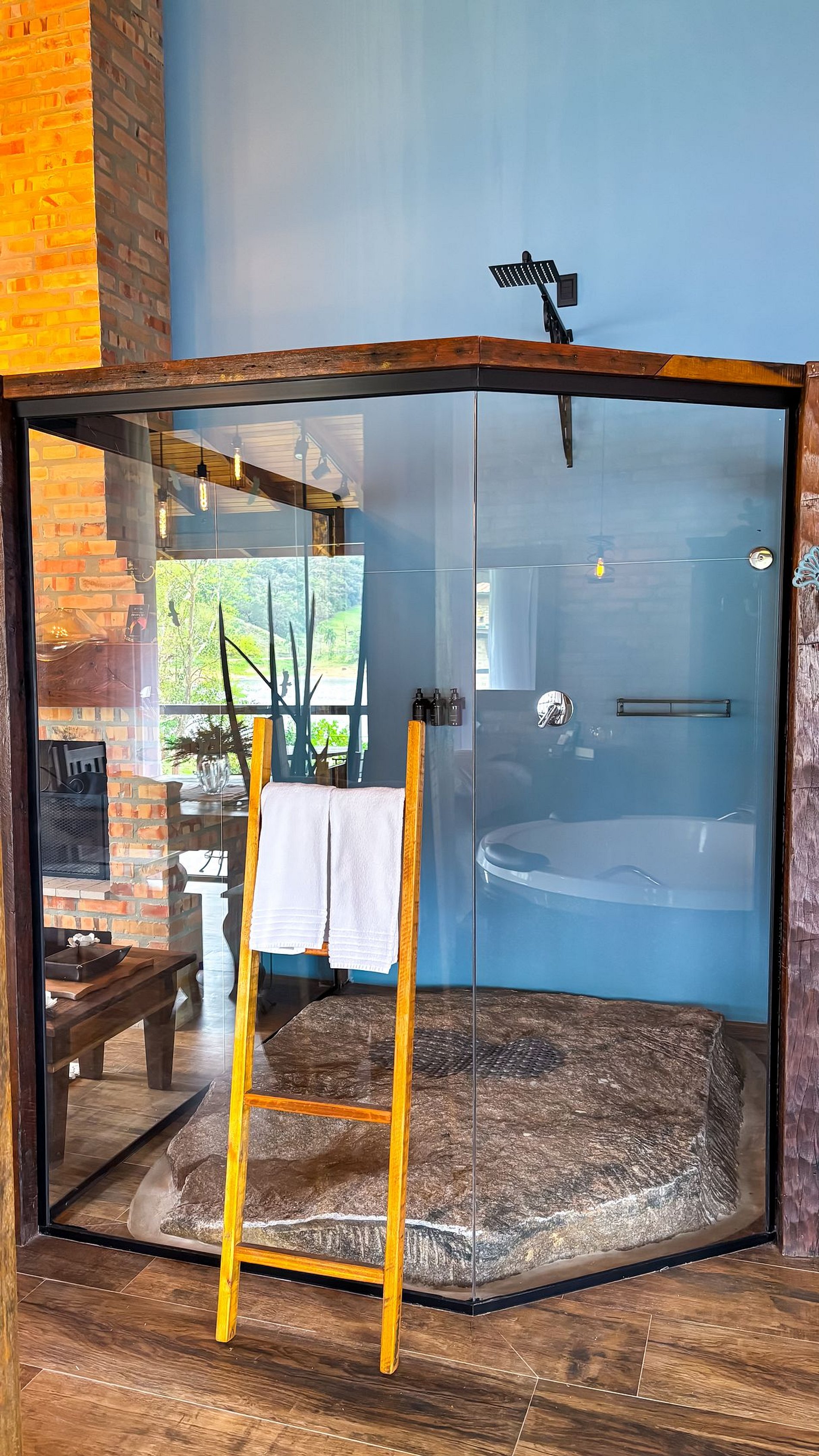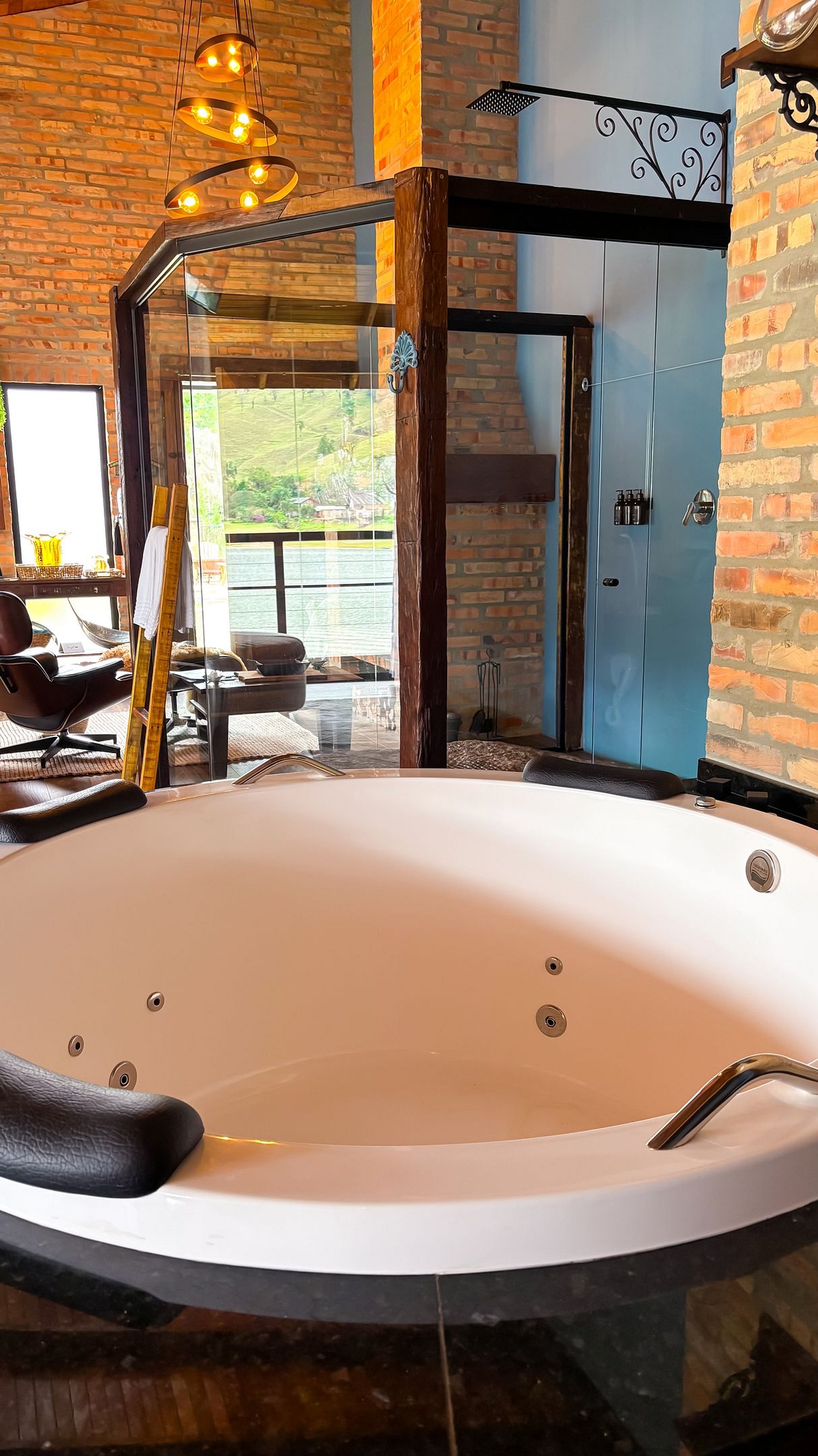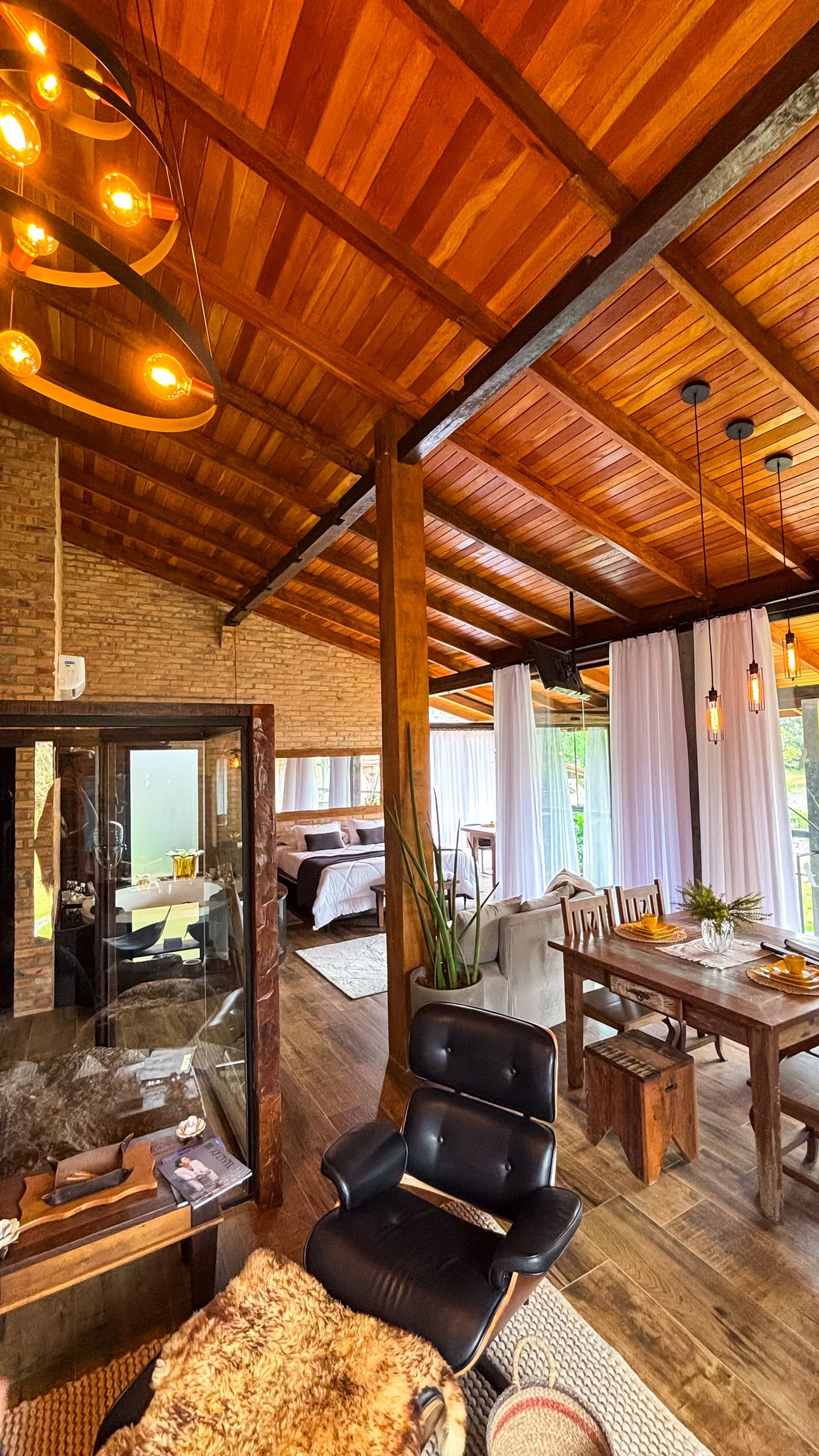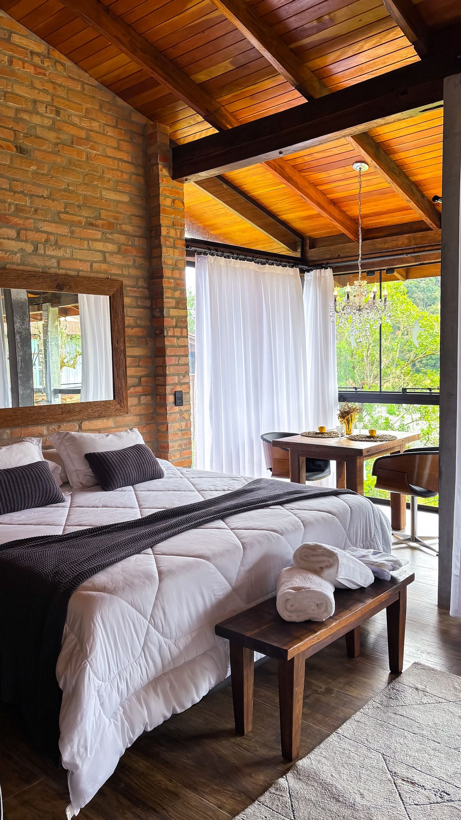 Projetada para trazer o máximo de conforto aos hóspedes, a Cabana de Pedra oferece a combinação perfeita de comodidade e sofisticação com uma vista privilegiada para a Barragem. Seus diferenciais de design, como o chuveiro exclusivo com chão de pedra, e a rede suspensa na varanda, garantem uma experiência única e inesquecível.