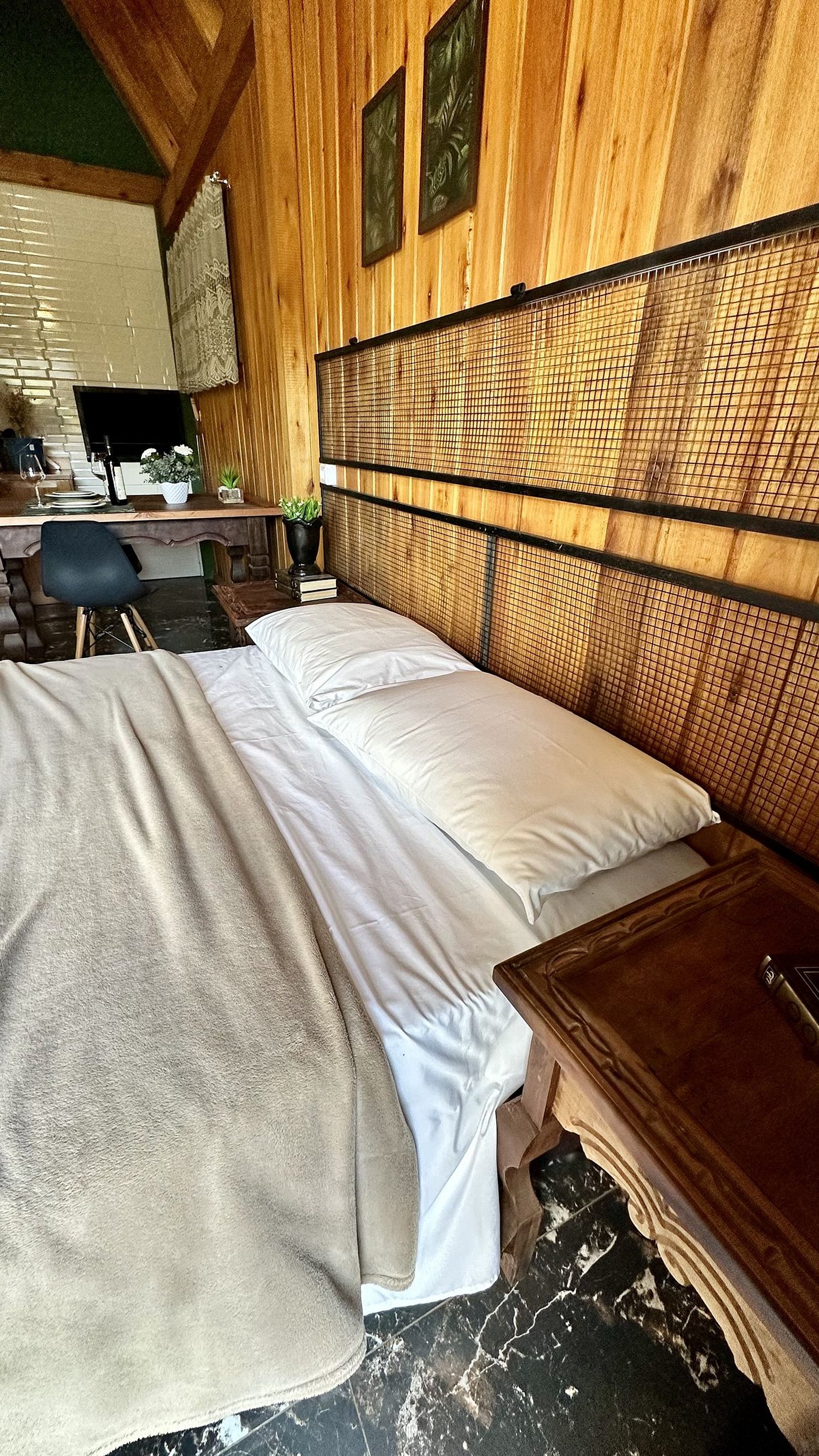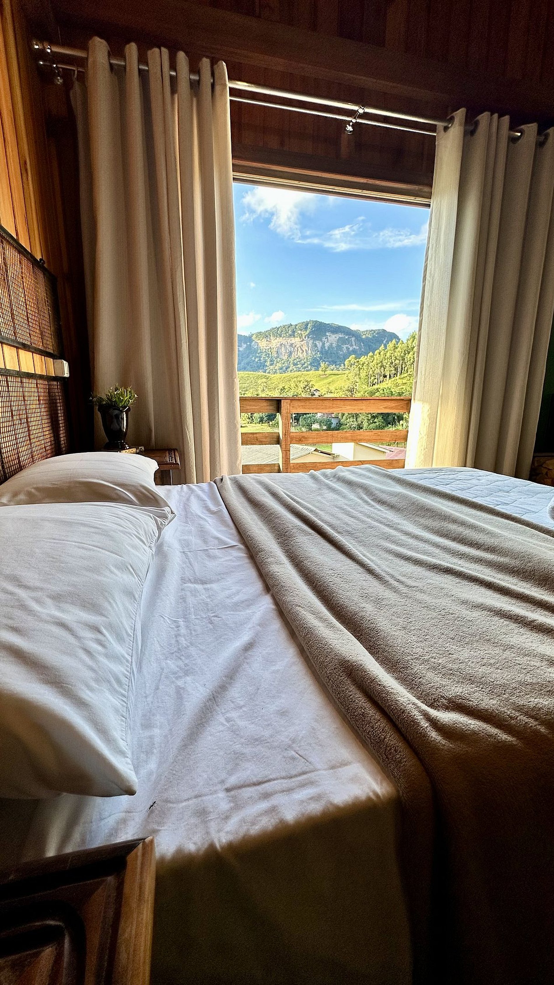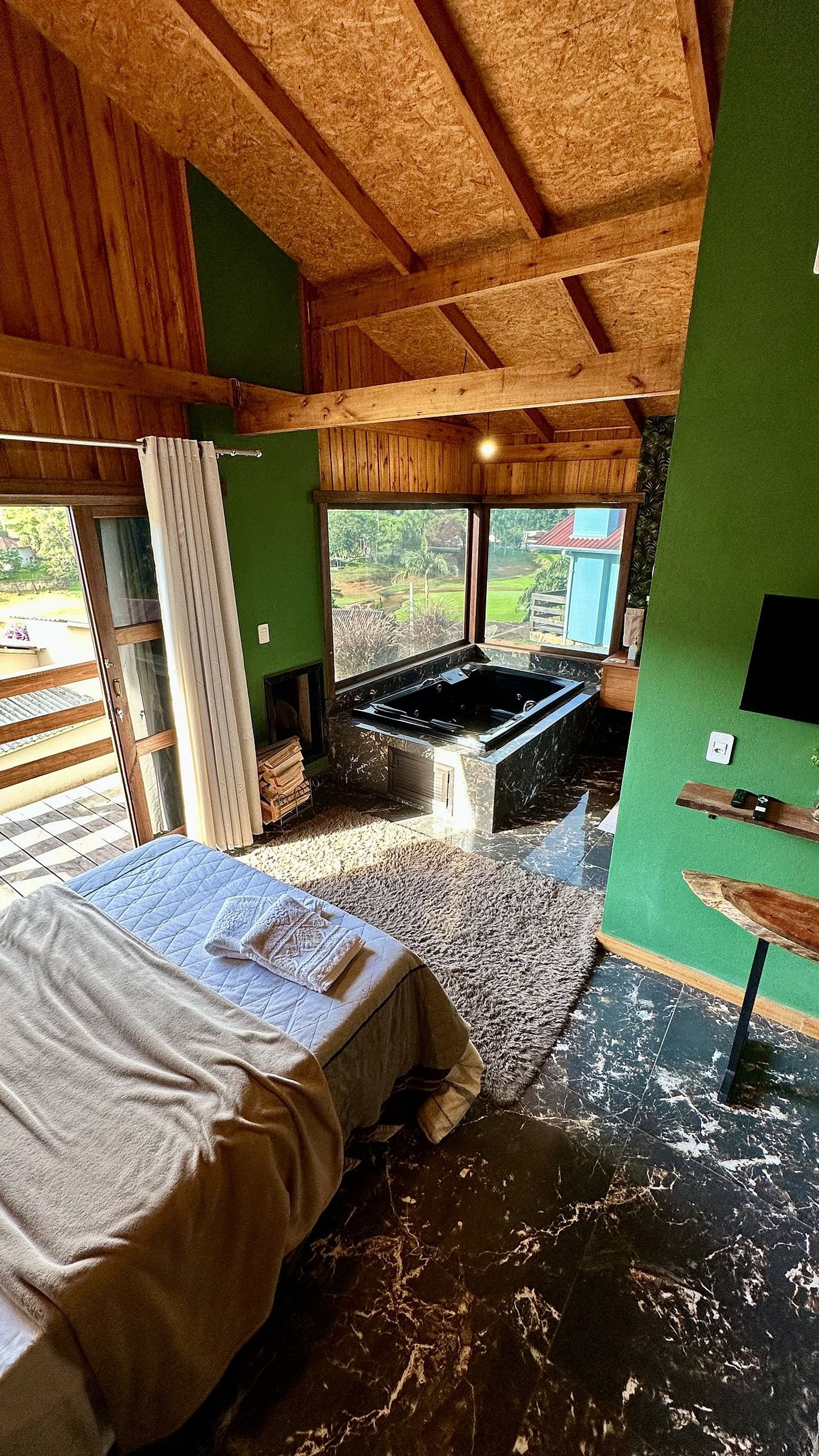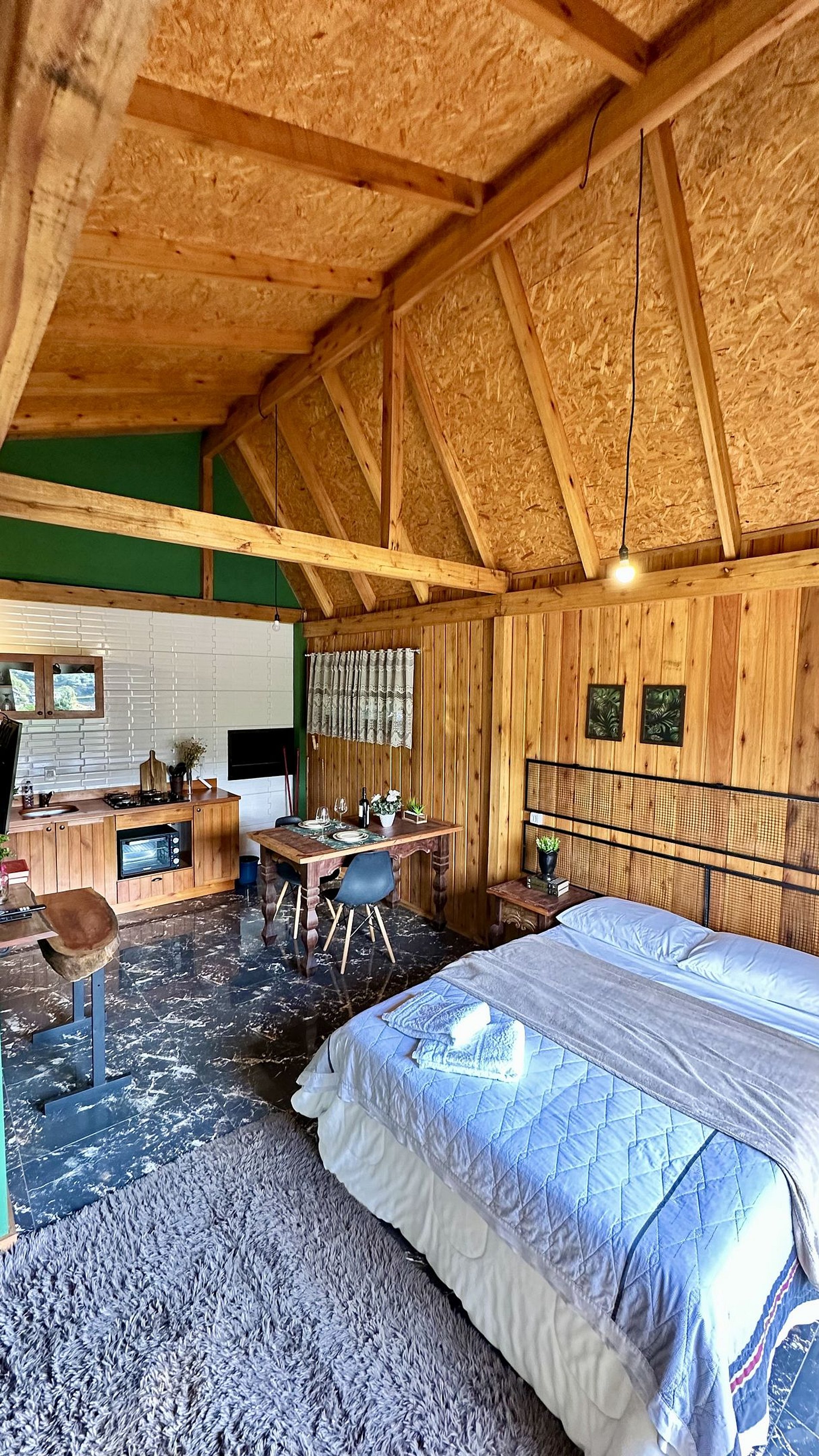 A cama é super confortável com roupas de cama e banho de qualidade. A lareira proporciona um ambiente agradável nos dias frios. Oferecemos lenha para a estadia.